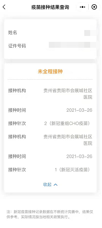 4.點(diǎn)擊打開后,即可看到“接種機(jī)構(gòu)”“接種時(shí)間”“接種劑次”等信息