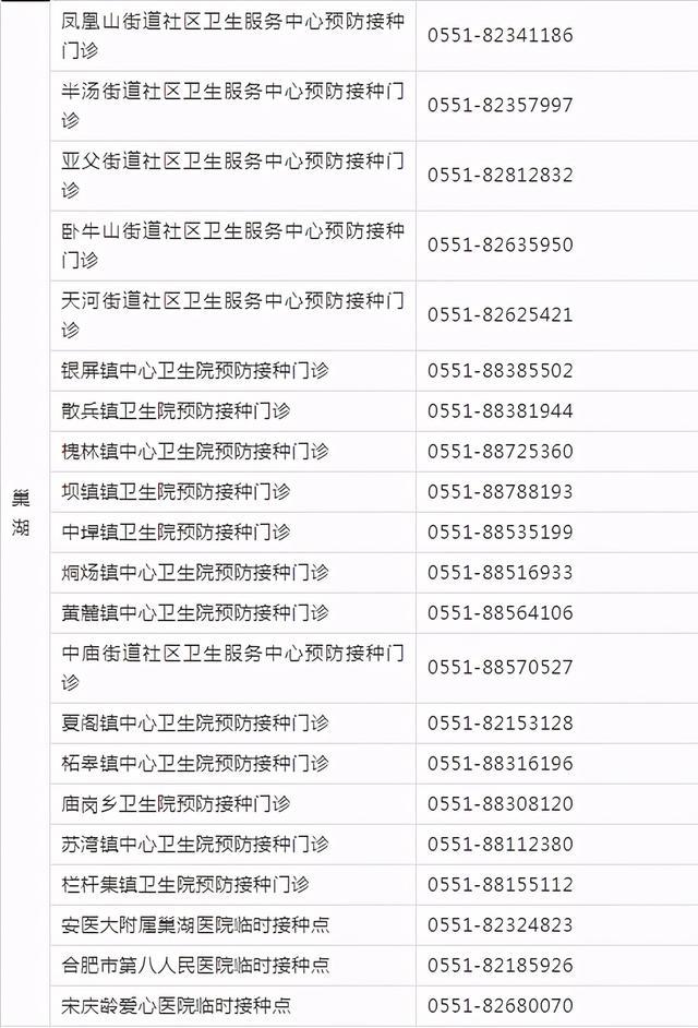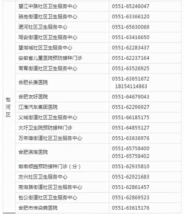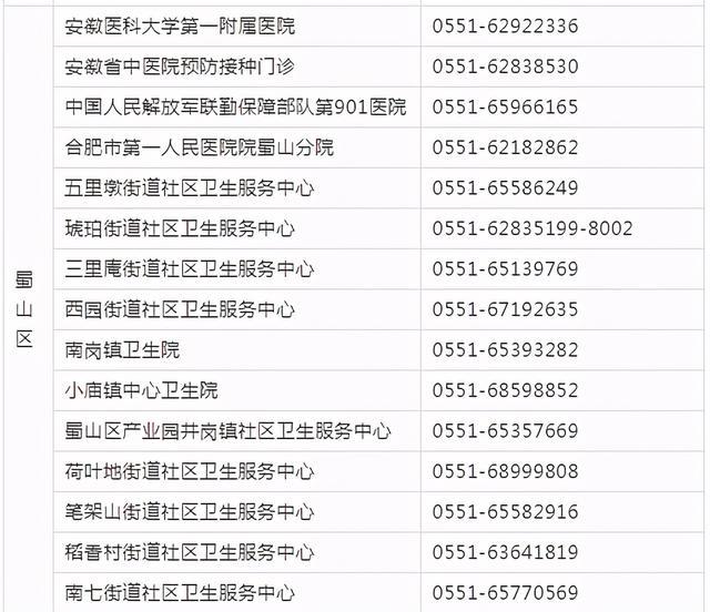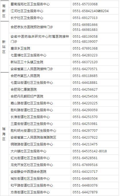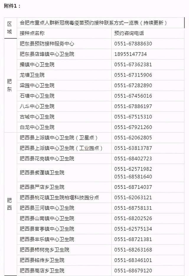 為便于有關(guān)重點(diǎn)人群查詢新冠病毒疫苗接種預(yù)約方式,現(xiàn)將合肥市各縣(市)區(qū)、開發(fā)區(qū)疫情防控應(yīng)急指揮部設(shè)立的轄區(qū)新冠病毒疫苗預(yù)約接種點(diǎn)的聯(lián)系方式統(tǒng)一公布如下(共152個(gè)接種點(diǎn),)。