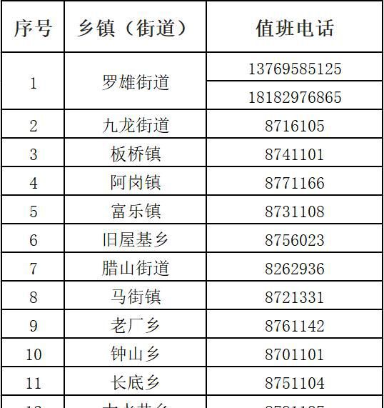 羅平縣各鄉(xiāng)鎮(zhèn)(街道)值班電話匯總表