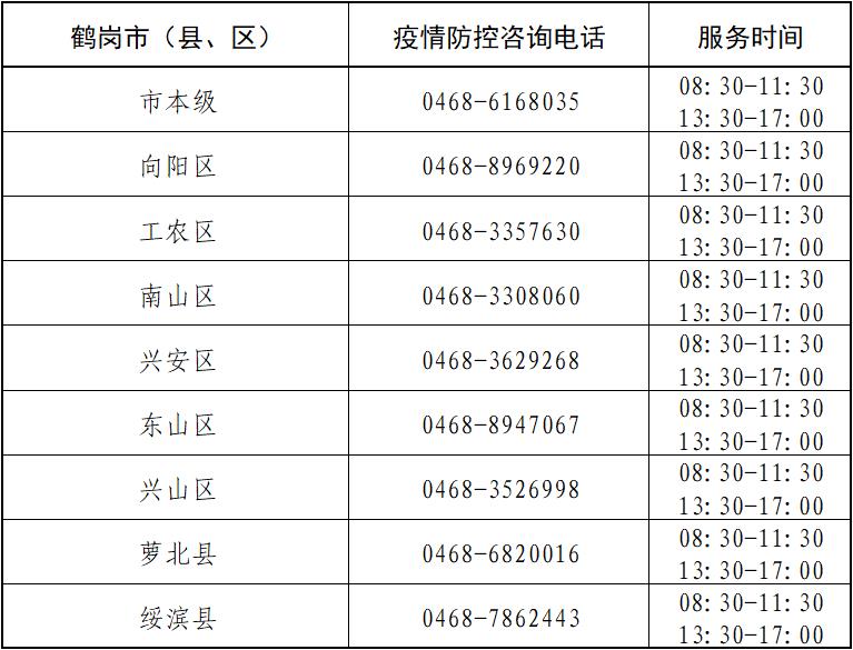 鶴崗市各縣(市、區(qū))新冠疫情防控指揮部咨詢電話: