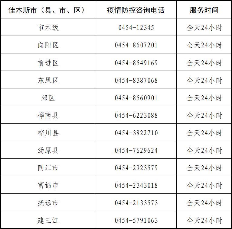 佳木斯市各縣(市)區(qū)新冠疫情防控指揮部咨詢電話
