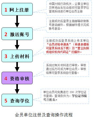 中國大陸行政機(jī)關(guān)、企事業(yè)單位及其他合法社會(huì)組織同意《學(xué)位證書查詢系統(tǒng)會(huì)員單位注冊條款》,并在使用過程中遵守本協(xié)議所述之條款,自行進(jìn)行會(huì)員單位注冊,注冊成功后登錄系統(tǒng)上傳本單位營業(yè)執(zhí)照或組織機(jī)構(gòu)代碼證掃描件,通過審核后,即可正式成為我們的會(huì)員單位。