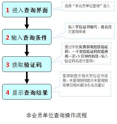 共提供三種查詢方法:一是學(xué)位獲得者查詢,學(xué)位獲得者本人通過實(shí)名注冊認(rèn)證成功之后,登錄系統(tǒng)免費(fèi)查詢到本人所獲得的學(xué)位證書信息。二是會(huì)員單位查詢,查詢量較大的中國大陸行政機(jī)關(guān)、企事業(yè)單位及其他合法社會(huì)組織注冊成為會(huì)員單位之后,通過學(xué)位證書編號(hào)、姓名進(jìn)行免費(fèi)查詢,每個(gè)單位每年(自然年)可享受200條免費(fèi)查詢限額,當(dāng)年未使用完畢的免費(fèi)限額,次年1月1日自動(dòng)清零。三是非會(huì)員單位查詢,查詢量較少的單位直接通過手機(jī)免費(fèi)獲取短信驗(yàn)證碼進(jìn)行查詢,每個(gè)手機(jī)號(hào)每日限查5次。