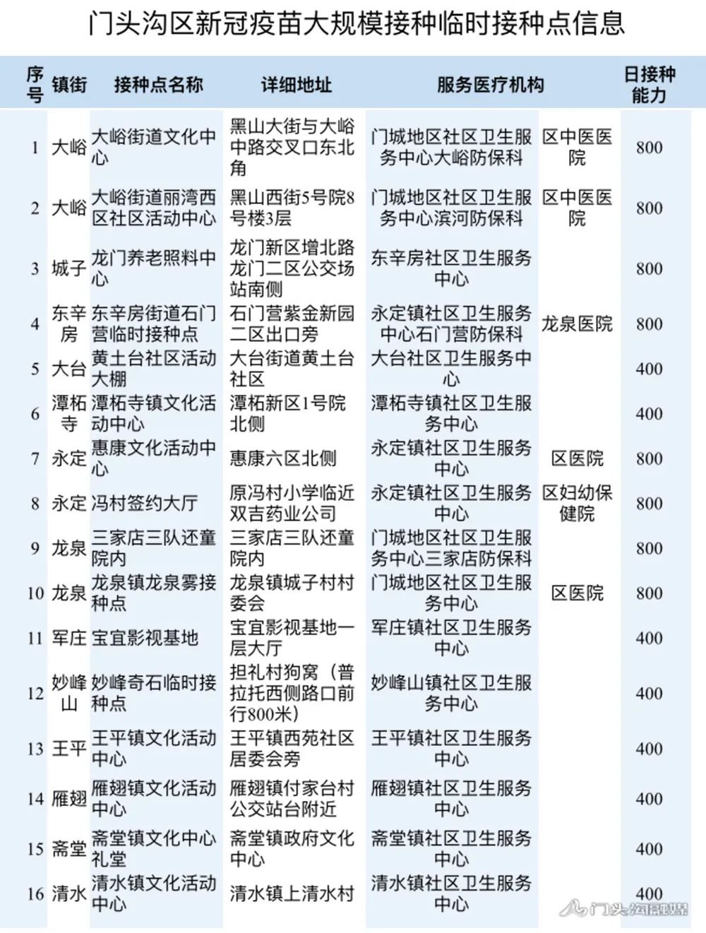 ?北京門頭溝16個新冠疫苗大規(guī)模接種臨時接種點地址