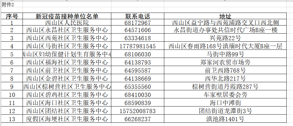 為鞏固疫情防控成果,建立人群免疫屏障,確保人民群眾生命健康安全,根據(jù)上級(jí)新冠疫苗接種工作整體部署,昆明市西山區(qū)全民免費(fèi)接種新冠疫苗工作已全面展開;即日起,西山區(qū)轄區(qū)內(nèi)18歲以上居民(含60歲以上)身體狀況符合接種要求的均需免費(fèi)接種新冠病毒疫苗,請(qǐng)您與所在單位或社區(qū)聯(lián)系疫苗接種相關(guān)事宜。目前;西山區(qū)共有81家機(jī)構(gòu)可供市民預(yù)約接種新冠病毒疫苗。詳細(xì)單位名單、地址、接種時(shí)間和預(yù)約電話等信息看這里↓↓↓