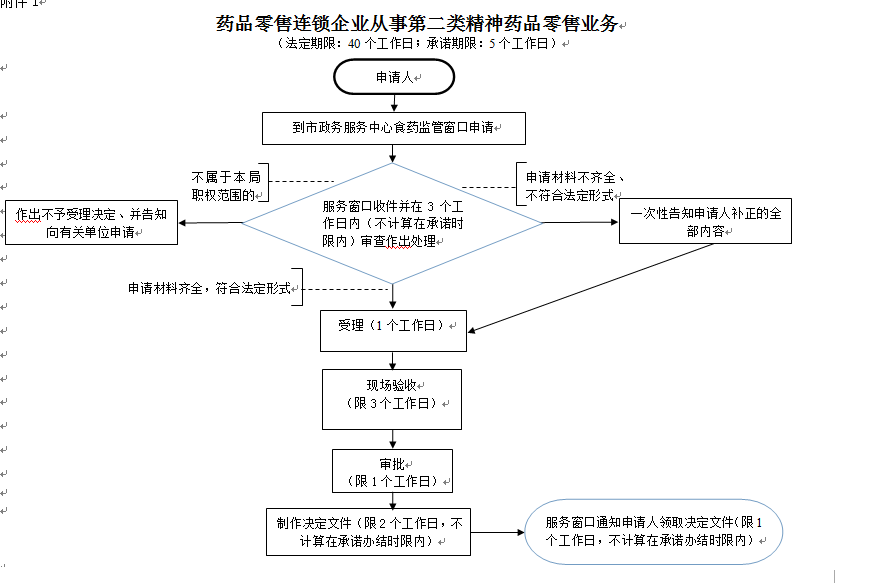 一、審查方式:書面審查。標(biāo)準(zhǔn)如下:(一)申請(qǐng)書(表)的審查標(biāo)準(zhǔn)1.對(duì)申請(qǐng)人提交的申請(qǐng)書(表)及其相關(guān)材料進(jìn)行完整性、準(zhǔn)確性審核;2.文書應(yīng)使用鋼筆和能夠長期保持字跡的墨水填寫或打印,做到字跡清楚、文字規(guī)范、文面整潔。文書設(shè)定的欄目,應(yīng)逐項(xiàng)填寫完整、準(zhǔn)確;3. 申請(qǐng)材料中的表格應(yīng)使用國際標(biāo)準(zhǔn)A4型紙正面印制;4. 相關(guān)申請(qǐng)表格應(yīng)由申請(qǐng)相對(duì)人、申請(qǐng)單位填寫并本人簽名、加蓋單位公章,沒有單位印章的,應(yīng)由其單位負(fù)責(zé)人簽名。(二)證明文件等材料的審查標(biāo)準(zhǔn)1.證明文件等材料應(yīng)使用國際標(biāo)準(zhǔn)A4型紙打印、復(fù)印或按照A4型紙的規(guī)格裝訂;2. 復(fù)印材料應(yīng)清晰可辨認(rèn);3. 證明材料相關(guān)內(nèi)容與申請(qǐng)書(表)保持一致。二、審查方式:現(xiàn)場(chǎng)驗(yàn)收。根據(jù)《藥品管理法》、《藥品經(jīng)營許可證管理辦法》、《麻醉藥品和精神藥品管理?xiàng)l例》進(jìn)行現(xiàn)場(chǎng)驗(yàn)收。 |