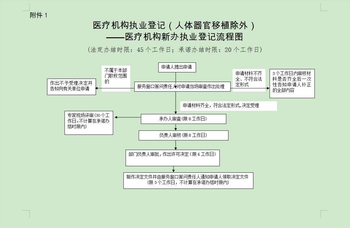 第十五條?醫(yī)療機(jī)構(gòu)在完成《設(shè)置醫(yī)療機(jī)構(gòu)批準(zhǔn)書》核準(zhǔn)的事項(xiàng)后,應(yīng)當(dāng)向批準(zhǔn)其設(shè)置的衛(wèi)生行政部門申請(qǐng)執(zhí)業(yè)登記,領(lǐng)取《醫(yī)療機(jī)構(gòu)執(zhí)業(yè)許可證》。第十七條?衛(wèi)生行政部門應(yīng)當(dāng)自受理之日起45?日內(nèi),對(duì)申請(qǐng)執(zhí)業(yè)的醫(yī)療機(jī)構(gòu)進(jìn)行實(shí)地查驗(yàn),逐項(xiàng)審核。符合條件的,發(fā)給《醫(yī)療機(jī)構(gòu)執(zhí)業(yè)許可證》;不符合條件的,書面說明理由。 |