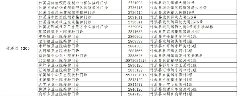 為鞏固疫情防控成果,建立人群免疫屏障,確保人民群眾生命健康安全,根據(jù)上級新冠疫苗接種工作整體部署,十堰市竹溪縣全民免費接種新冠疫苗工作已全面展開;即日起,竹溪縣轄區(qū)內(nèi)18歲以上居民(含60歲以上)身體狀況符合接種要求的均需免費接種新冠病毒疫苗,請您與所在單位或社區(qū)聯(lián)系疫苗接種相關(guān)事宜。竹溪縣市民預(yù)約接種新冠病毒疫苗單位名單、地址、接種時間和預(yù)約電話等相關(guān)信息看這里↓↓↓
