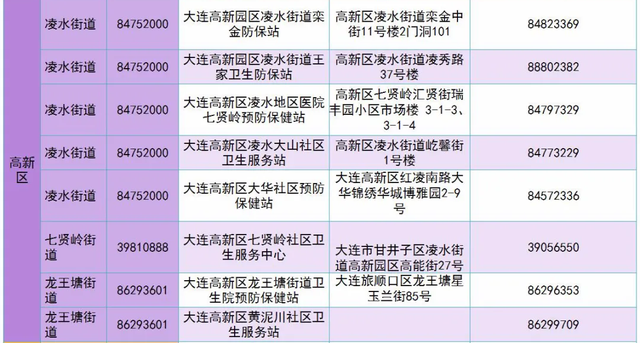 大連市高新區(qū)凌水街道新冠病毒疫苗接種點信息