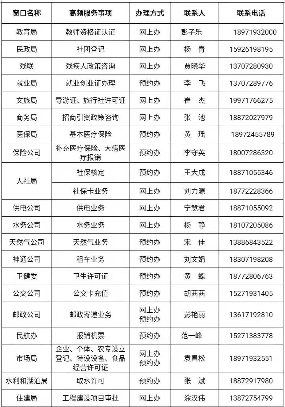 神農(nóng)架林區(qū)政務(wù)服務(wù)中心辦事大廳窗口聯(lián)系信息