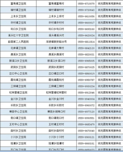 接種地址:黃山市歙縣王村鎮(zhèn)王村村2號