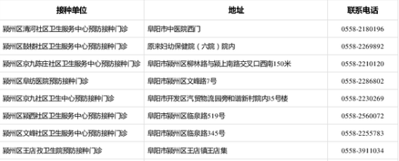 接種地址:阜陽市潁州區(qū)清河西路17號