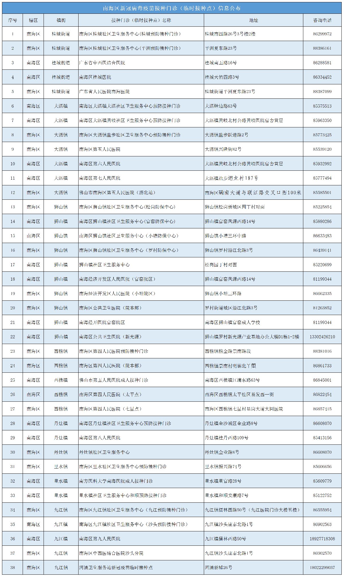 佛山市南海區(qū)新冠病毒疫苗接種點信息