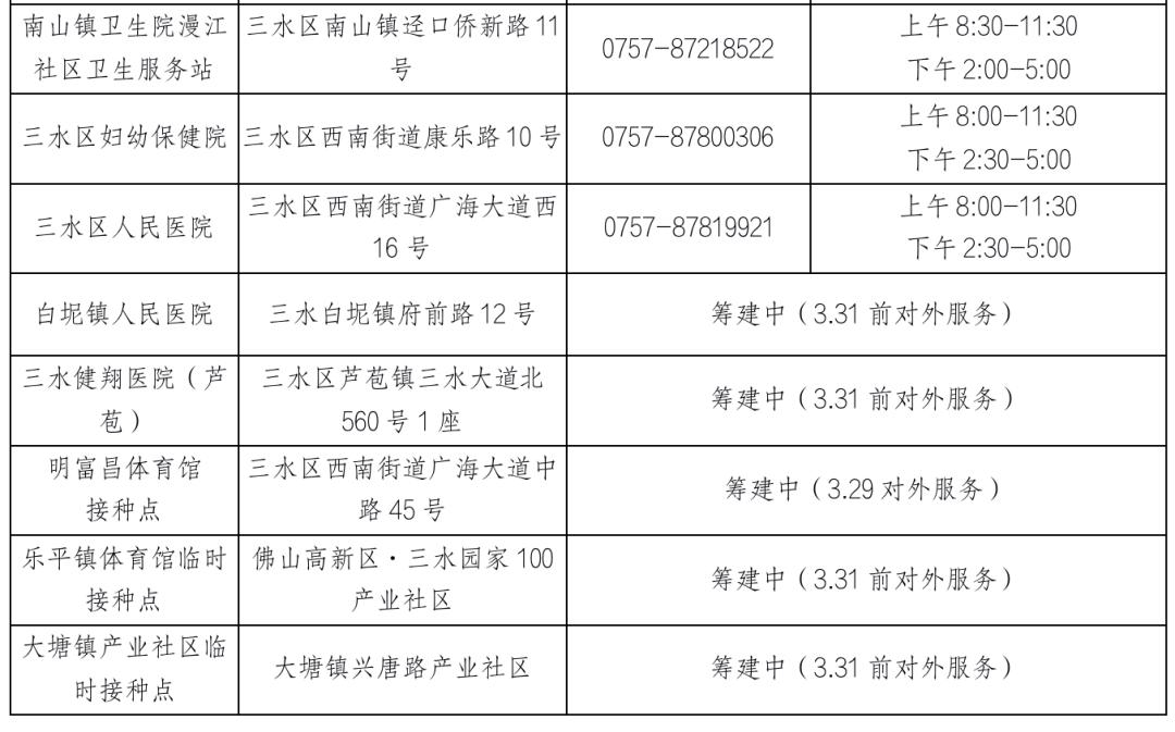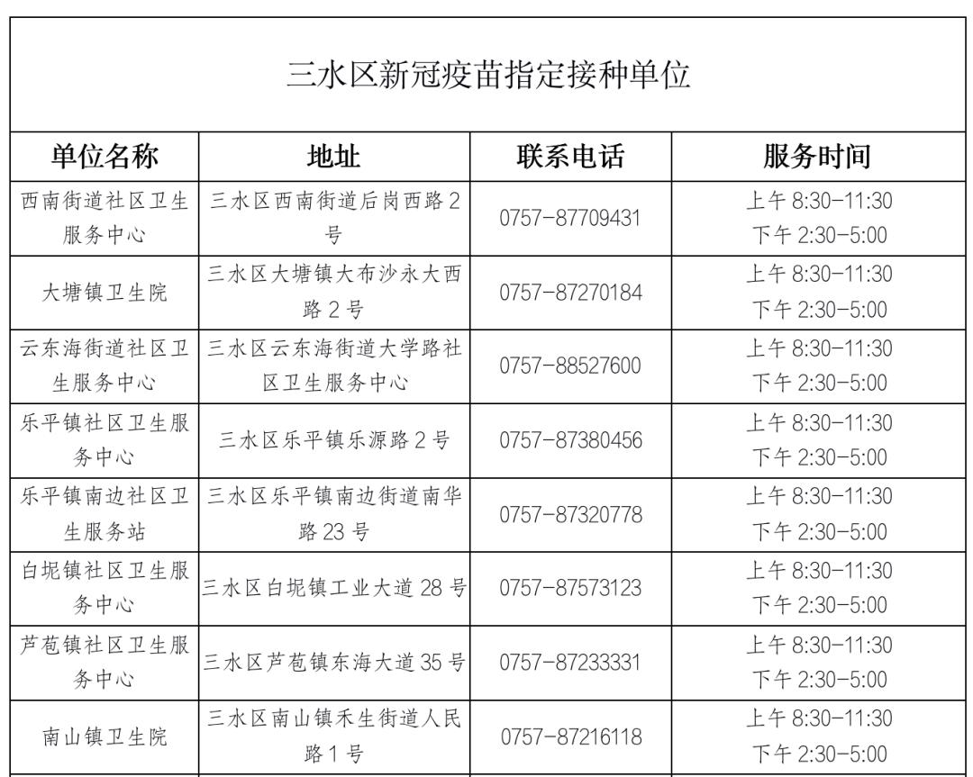 佛山市三水區(qū)新冠病毒疫苗接種點信息