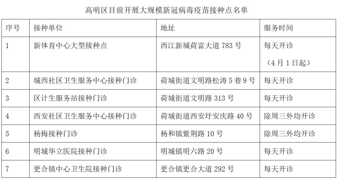 佛山市高明區(qū)新冠病毒疫苗接種點(diǎn)信息