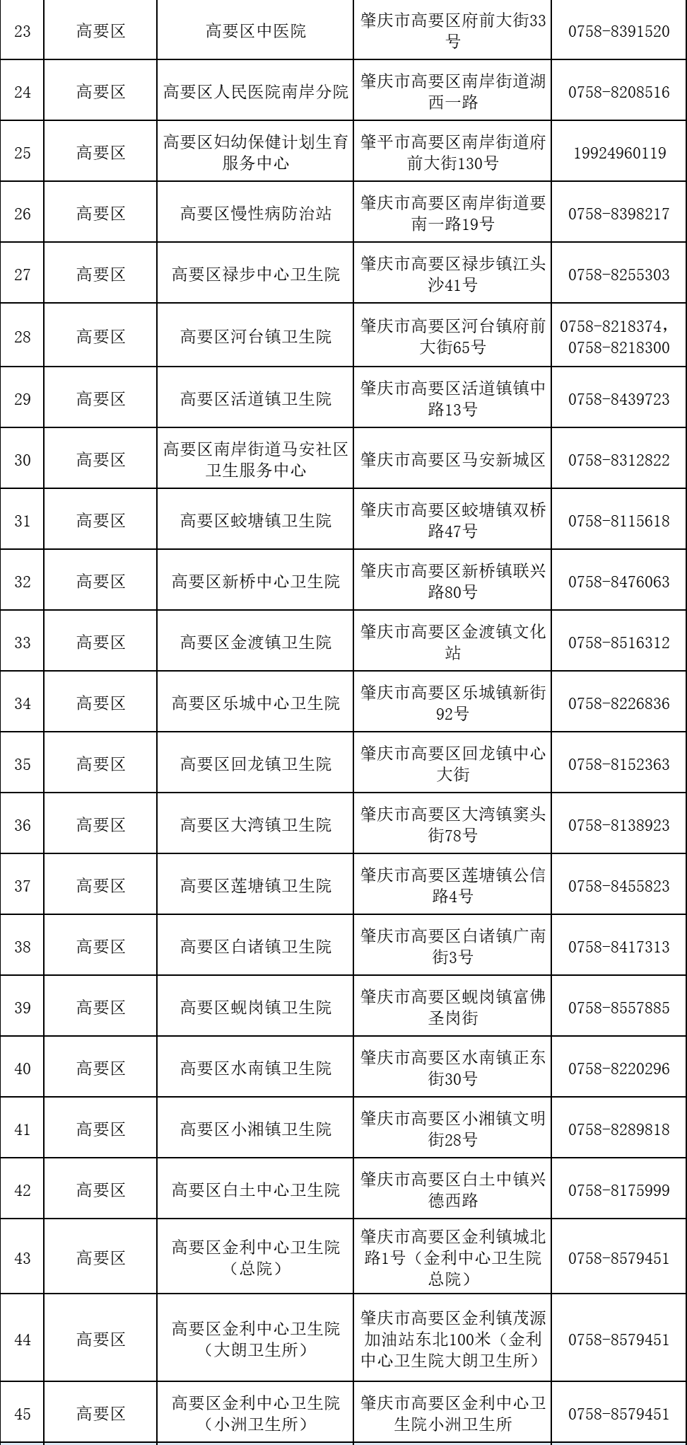 肇慶市高要區(qū)新冠病毒疫苗接種點(diǎn)信息