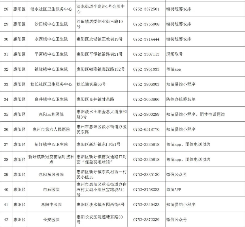惠州市惠陽區(qū)新冠病毒疫苗接種點信息
