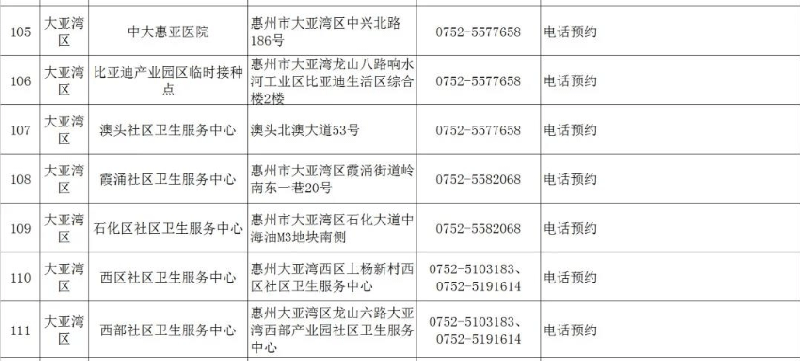 惠州市大亞灣區(qū)新冠病毒疫苗接種點信息