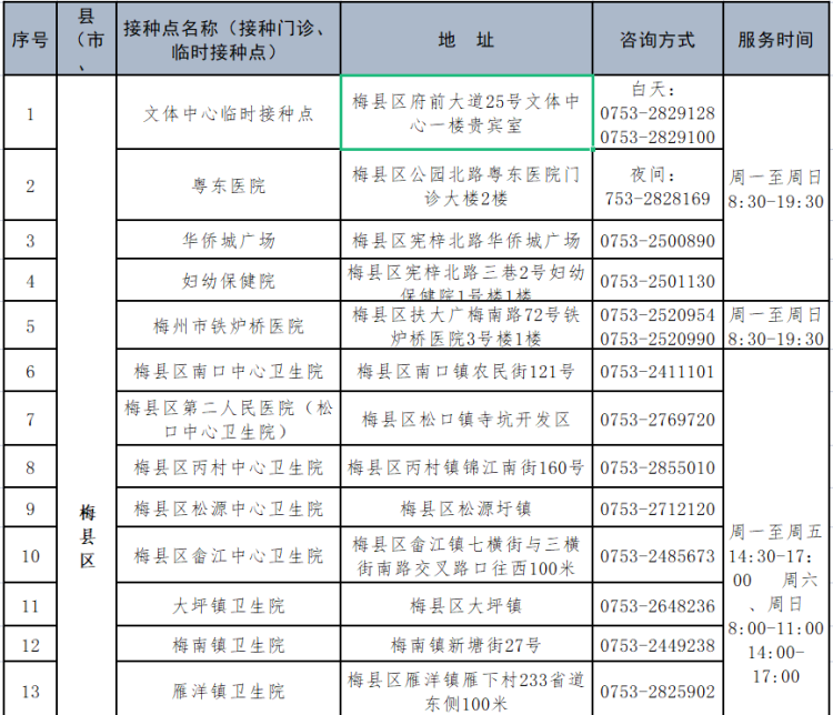 接種地址:梅州市梅縣區(qū)梅西鎮(zhèn)車崇村道