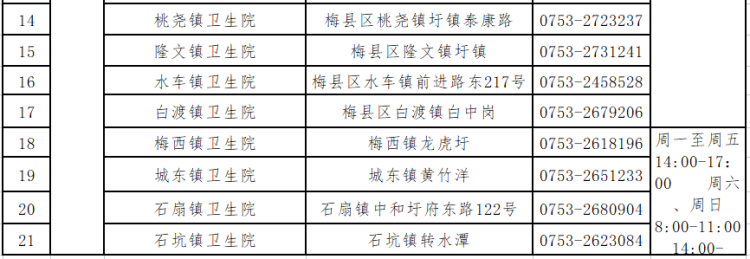 19、梅縣區(qū)桃堯衛(wèi)生院預(yù)防接種門診