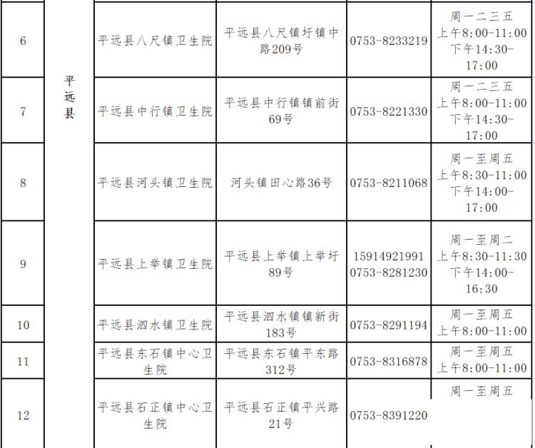 接種地址:平遠縣東石鎮(zhèn)平東路312號
