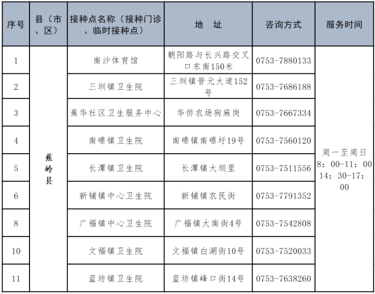 梅州市蕉嶺縣新冠病毒疫苗接種點(diǎn)信息