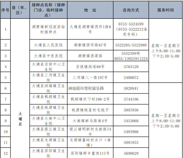 梅州市大埔縣新冠病毒疫苗接種點(diǎn)信息