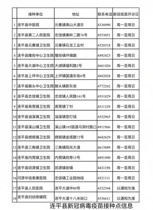 接種地址:河源連平縣內(nèi)莞鎮(zhèn)