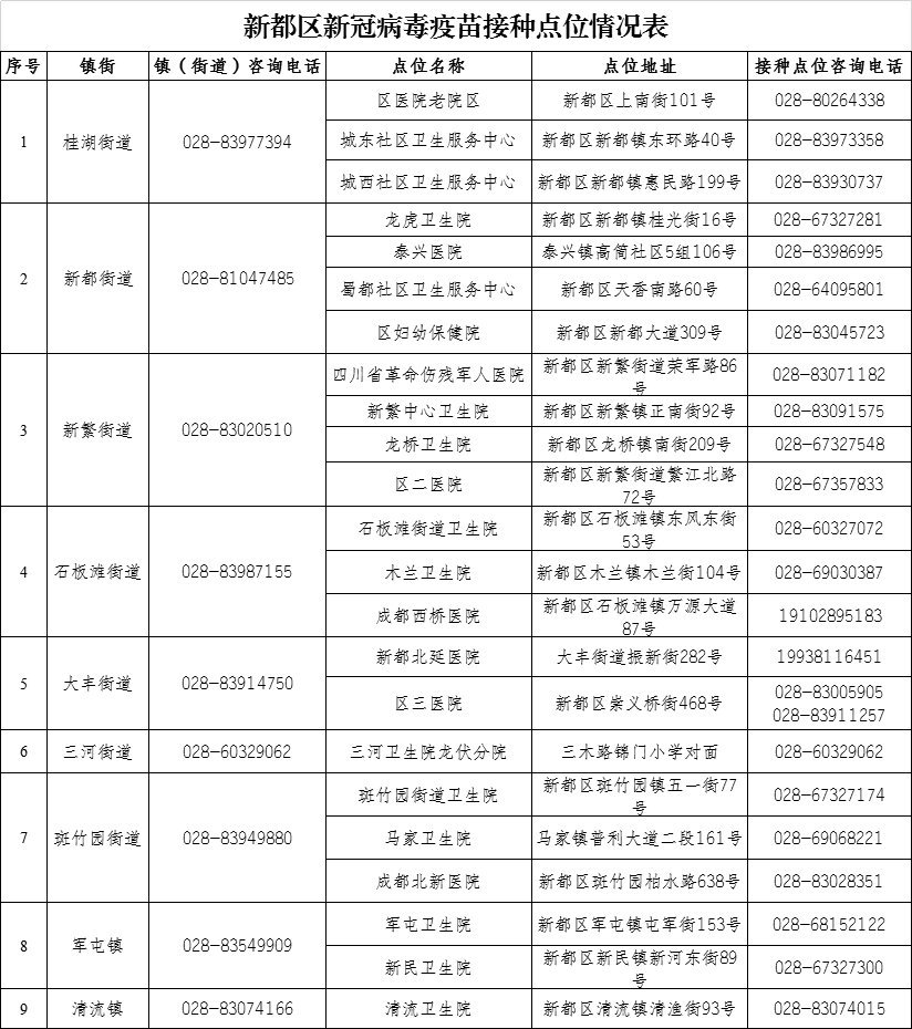 成都市新都區(qū)新冠病毒疫苗接種點信息