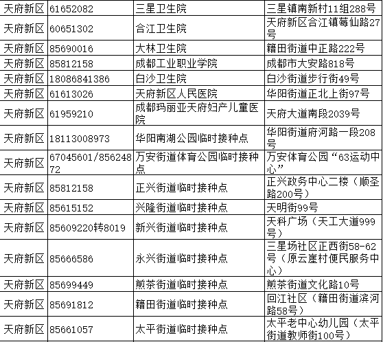 成都市天府新區(qū)新冠病毒疫苗接種點信息