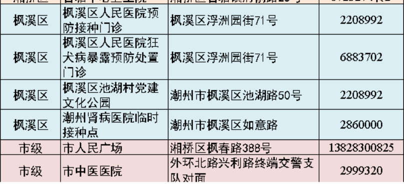 接種地址:潮州市楓春路池湖路段潮州市中心醫(yī)院第一分院