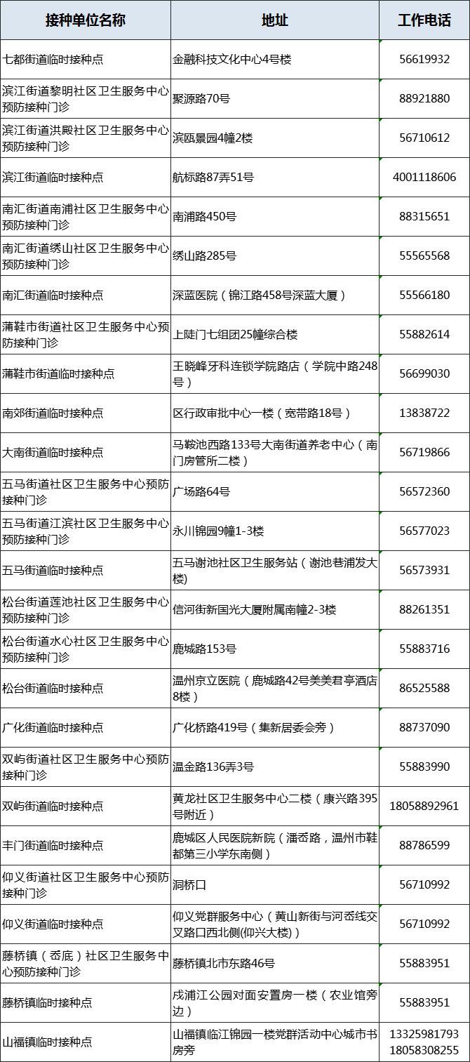 接種地址:溫州市鹿城區(qū)南匯街道南浦路450號