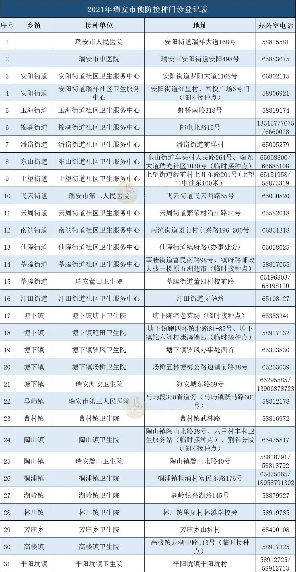 接種地址:瑞安市安陽(yáng)街道498號(hào)