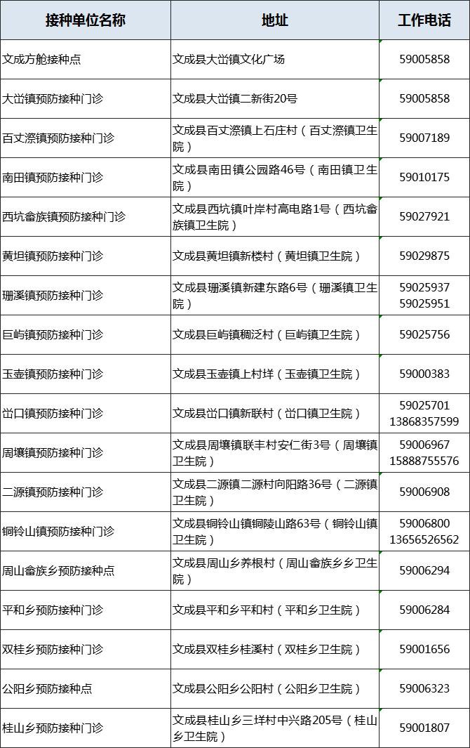 接種地址:文成縣黃坦鎮(zhèn)新樓村(黃坦鎮(zhèn)衛(wèi)生院)