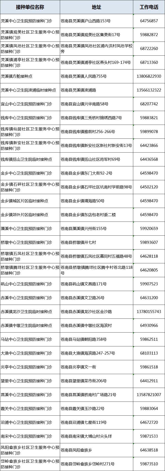 接種地址:溫州市蒼南縣靈溪鎮(zhèn)滬山西路153號