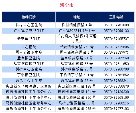 接種地址:浙江省嘉興市海寧市許村鎮(zhèn)健康路1號(hào)
