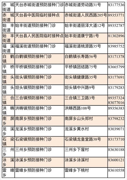 接種地址:浙江省臺州市天臺縣赤城街道人民西路205號
