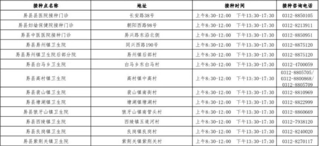 接種地址:保定市易縣高村鎮(zhèn)中高村;