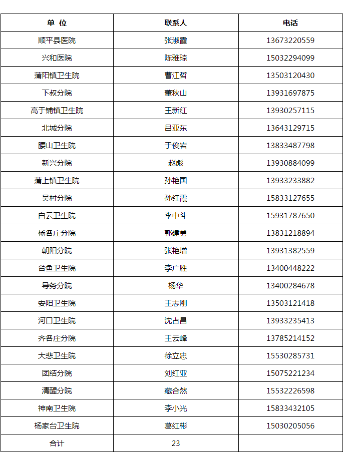 22、順平縣醫(yī)院疫苗接種門(mén)診