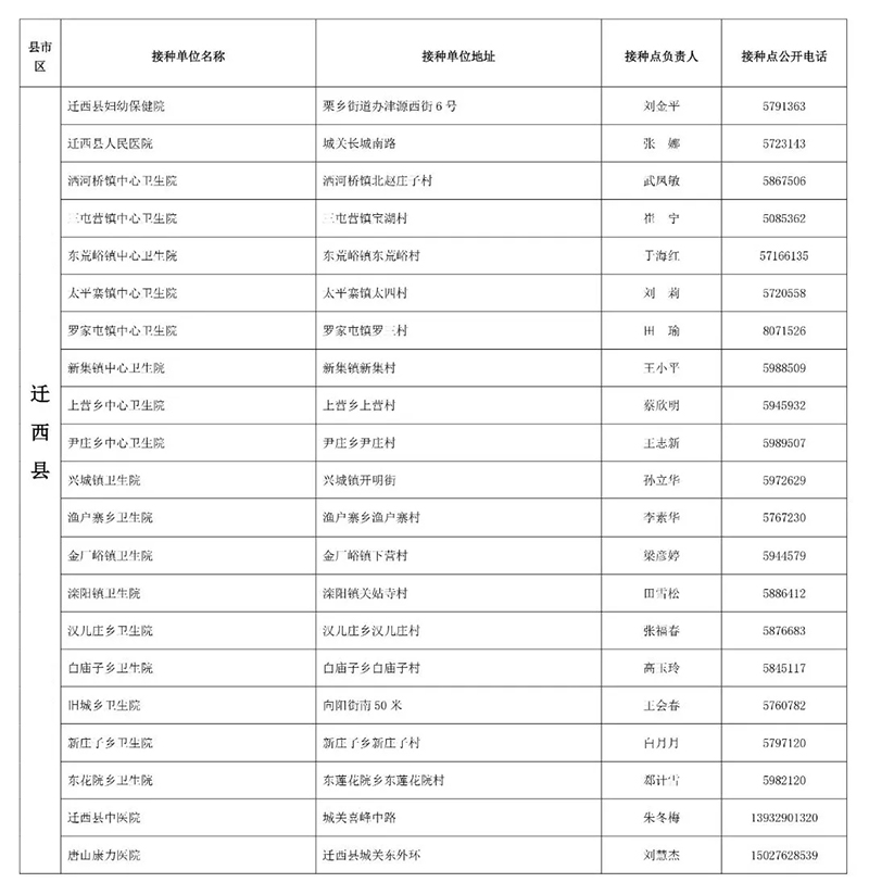 接種地址:唐山市遷西縣興城鎮(zhèn)開明街