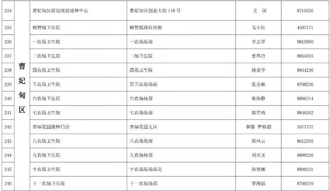 接種地址:唐山市曹妃甸區(qū)八農場場部