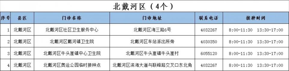 接種地址:秦皇島市北戴河區(qū)牛頭崖鎮(zhèn)牛頭崖村,