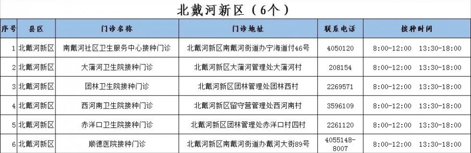 1、秦皇島市北戴河區(qū)社區(qū)衛(wèi)生服務(wù)中心疫苗接種門(mén)診