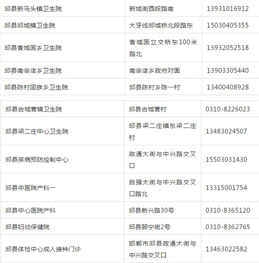 接種地址:河北省邯鄲市邱縣政通大街與中興路交叉口;