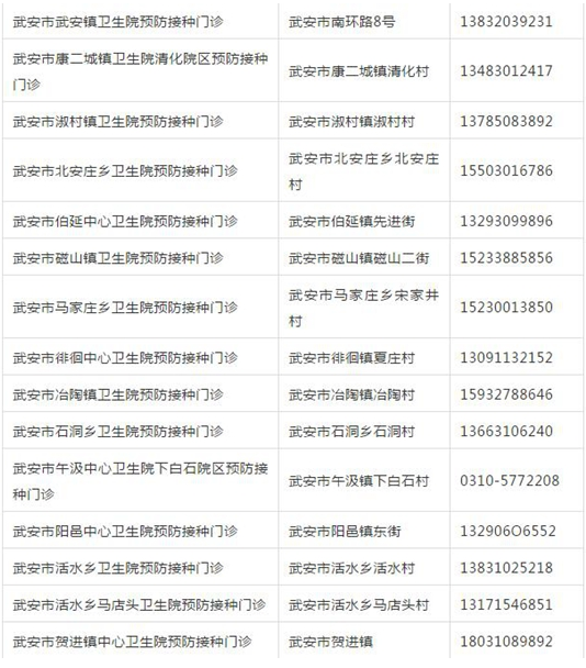 接種地址:河北省武安市磁山鎮(zhèn)磁山二街;