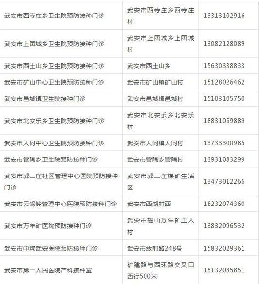 接種地址:河北省武安市北安莊鄉(xiāng)北安莊村;
