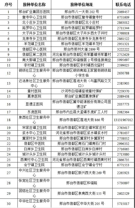 接種地址:河北省邢臺市信都區(qū)太行路403號;