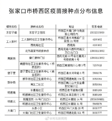 接種地址:河北省張家口市橋西區(qū)明德北街321號 ,