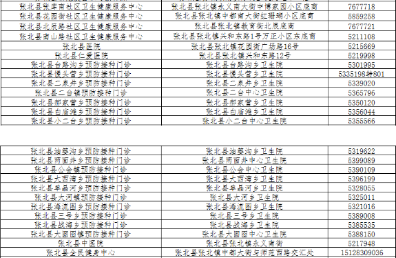 接種地址:張家口市張北縣張北鎮(zhèn)永義南街