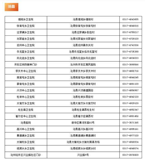 接種地址:滄州市滄縣新華區(qū)黃河東路62號